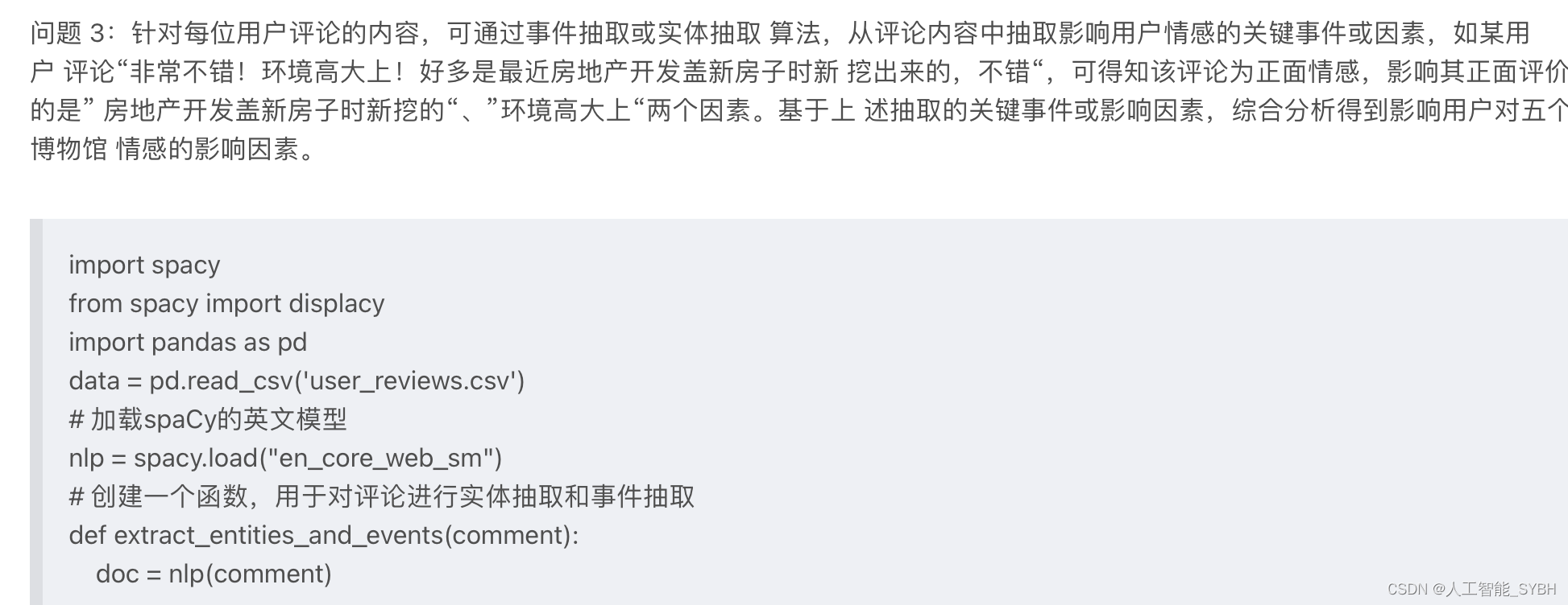 问题 3:针对每位用户评论的内容,可通过事件抽取或实体抽取