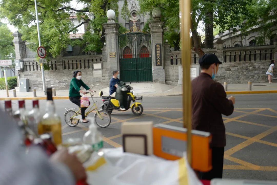 每天上午10点左右,一家鸡尾酒摊准时出现在位于北京东交民巷的比利时使馆旧址(现紫金宾馆)门口。一米宽的推车上,摆着调酒用的基酒、柠檬冰红茶、一次性塑料杯,还有疫情期间必备的酒精消毒用品。