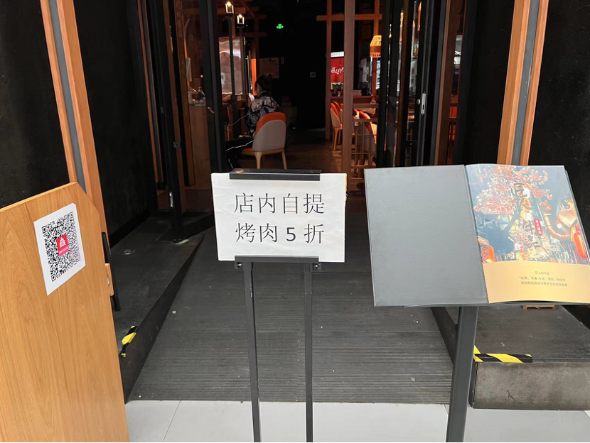 烤肉店烤肉自提五折。摄影:胡楠楠