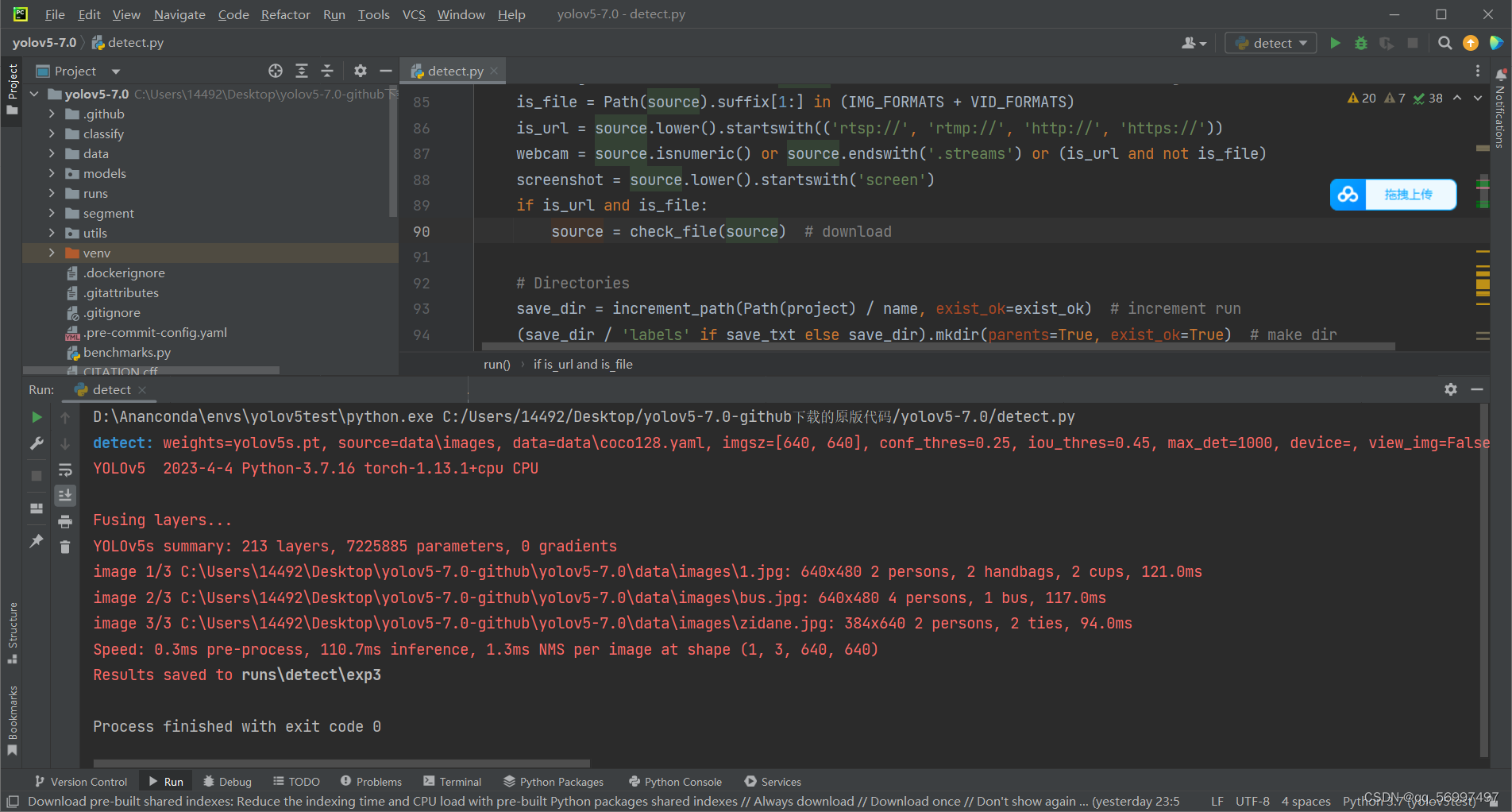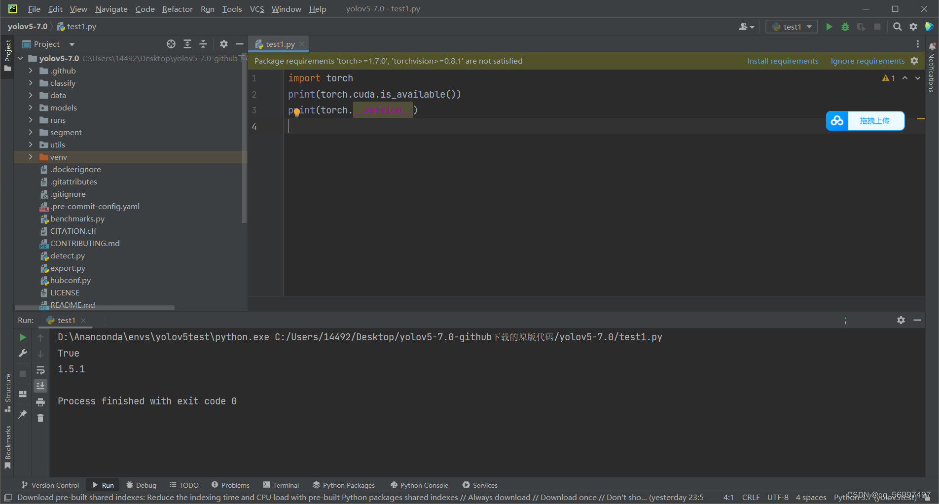 2.yolov5-7.0(我使用7.0的版本)安装包百度云,提取码1234