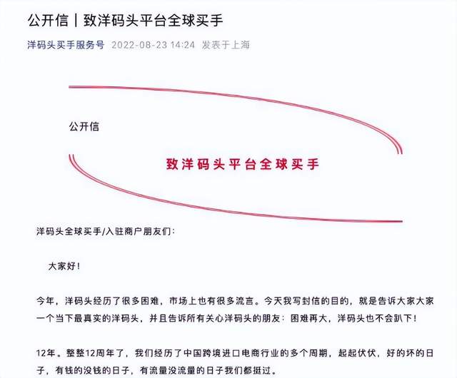 怎么说呢?没有人希望洋码头出事,但事实就是出事了,这是多因素集合的作用,有时候,时代改变的时候,个体是没有任何招架之力的。
