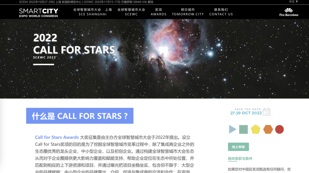 Call for Stars奖项组织方为:全球智慧城市大会Smart City Expo World Congress
