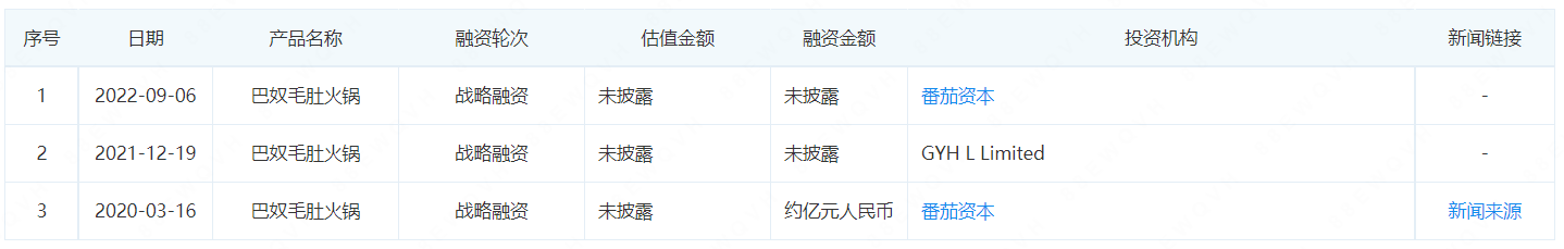 天眼查数据显示,巴奴火锅于2020年3月曾获得番茄资本近1亿元的战略投资,到了2021年6月,更是一次拿下由CPE源峰资本领投的5亿元融资,2022年9月,再次获得番茄资本的高额融资。据悉,巴奴火锅已经在调整相关战略,筹备下一轮融资了。