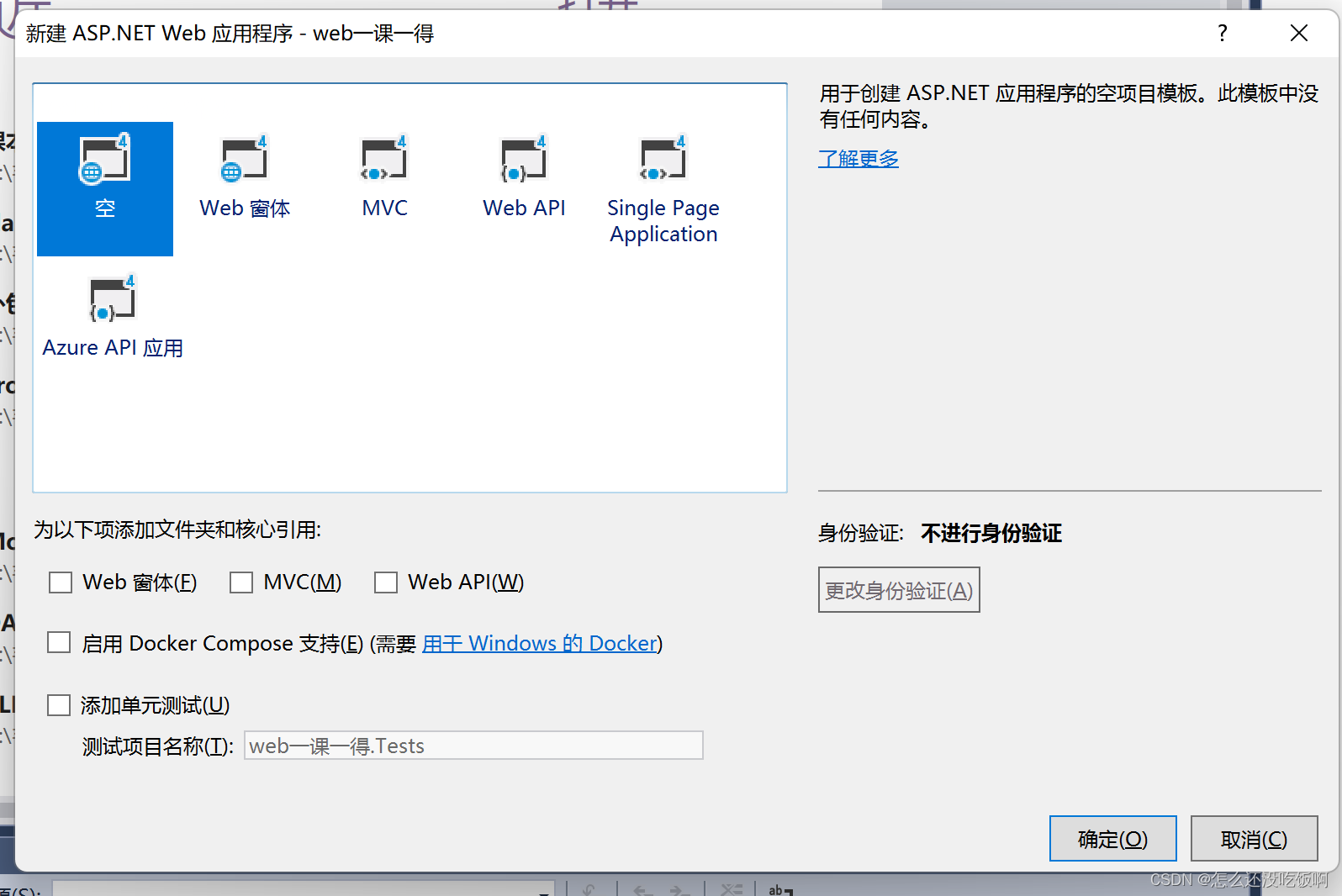 一定注意的是要选择一个空的应用程序用于创建ASP.NET应用程序的空项目模版