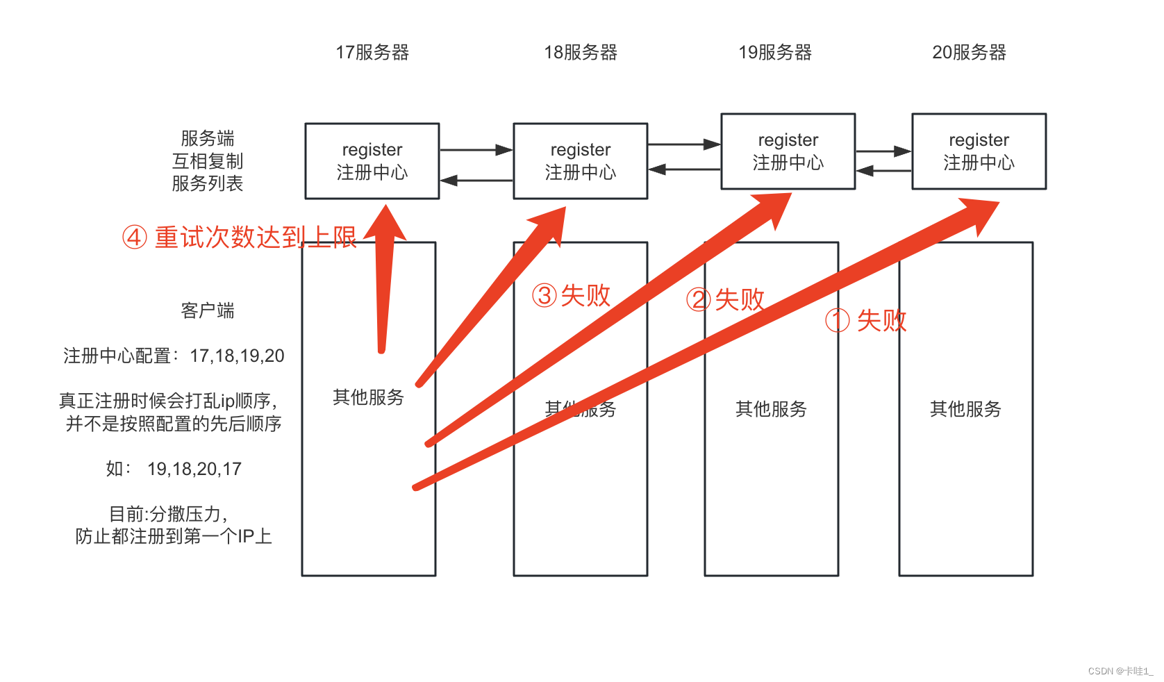 为啥打的日志看注册的顺序跟我配置的顺序不一致? 我配的4个ip是本机ip+其他3台ip,不是应该先注册自己吗?为啥打的日志是先注册的别人?就算是不按顺序也应该能轮到注册自己,也不至于失败啊?