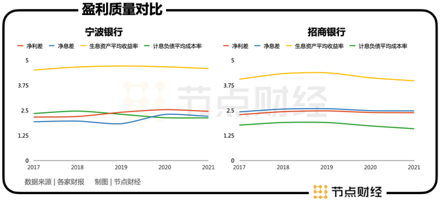 而这也是区域性银行劣势的体现。招商银行覆盖范围更广,与多家“衣食住行”企业均有合作联名,深度影响了消费者心智。招商银行的市场地位为其带来了更多核心竞争力,使其可以获得更多低利率的个人活期存款作为资金来源。反之宁波银行则有所欠缺。