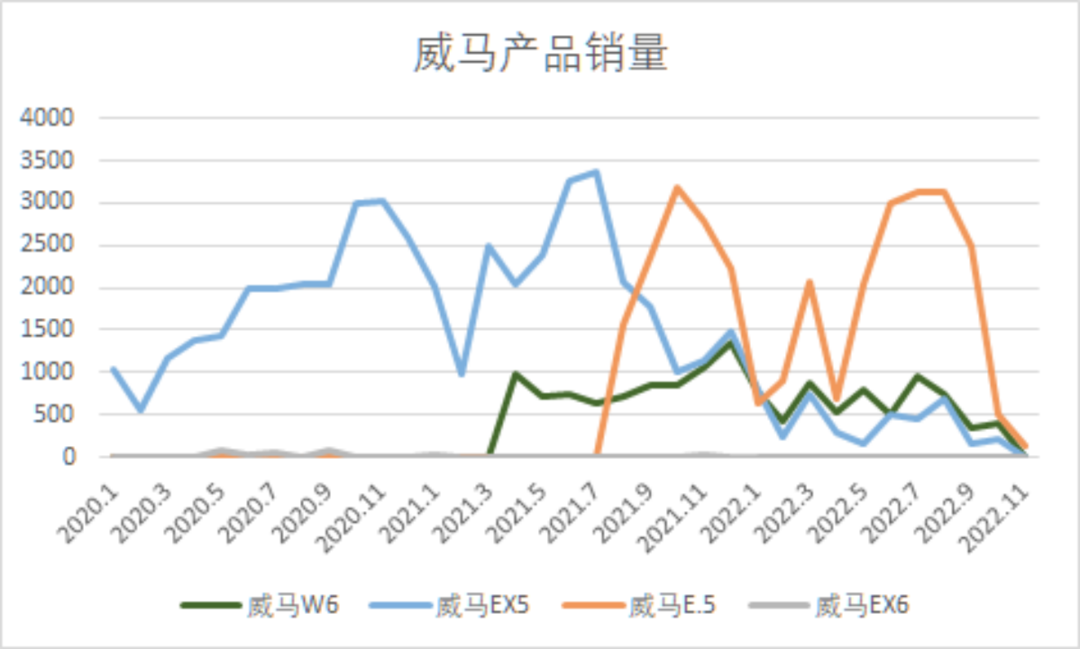 EX5销量的下行已然出现不可逆的趋势;EX6、W6的销量也已经侧面证明了产品本身的失败。