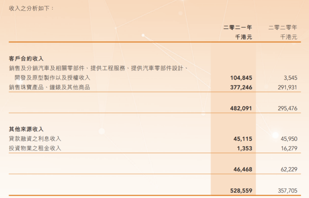 2021年报显示,公司主营业务为珠宝和钟表销售,营收占比为71%,2021年开始重点涉及汽车业务。2022年公司营收为6.2亿人民币,从基本面上来看,Apollo出行并不好,尤其在经营珠宝几年里亏损颇多,属于是上市公司中的“下等马”。