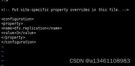 <configuration> <property> <name>dfs.replication</name> <value>3</value> </property> </configuration>
