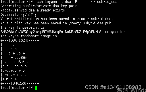 命令:** ssh-keygen -t dsa -P '' -f ~/.ssh/id_dsa**