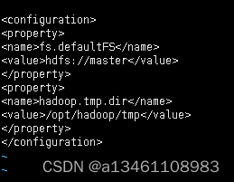 **命令: **vi /opt/hadoop/etc/hadoop/core-site.xml