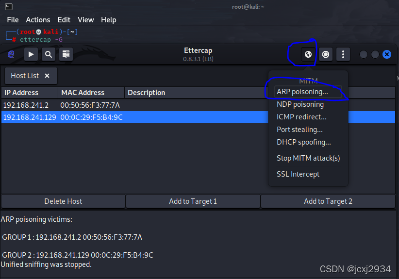 ARP poisoningARP攻击DNP poisoningDNP攻击ICMP redirectICMP重定向攻击Port stealing端口欺骗DHCP spoofingDHCP欺骗stop MITM attack(s)停止攻击SSL interceptSSL嗅探