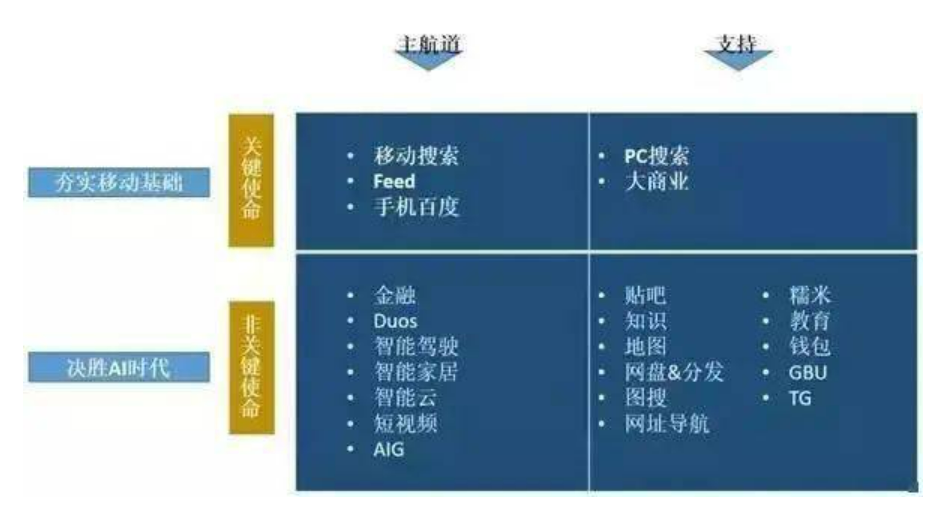 他通过对人员的大调动和业务梳理,让百度聚焦到“夯实移动基础,决胜AI时代”两条主线上来。可以说,至今百度依然沿着这一策略前进。