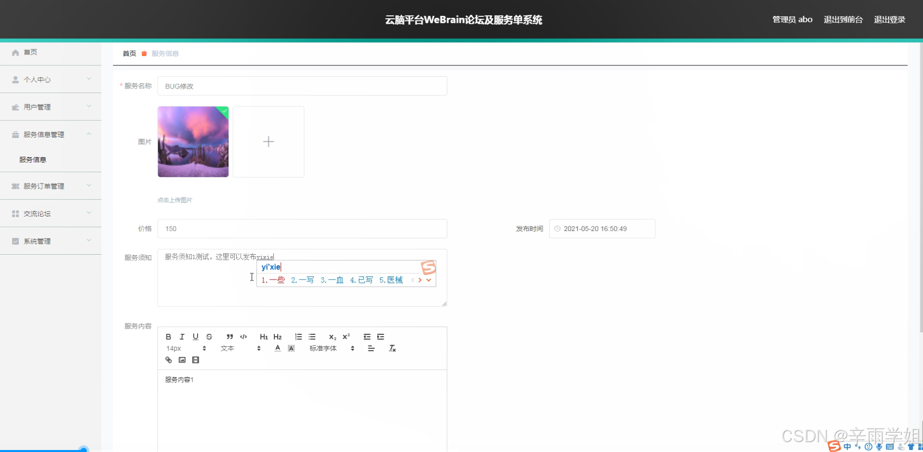 成功构建云脑平台WeBrain论坛及服务单系统,该系统具备用户、服务信息、服务单、维运人员等完善的功能模块,能够实现各模块之间的高效协同工作,提高云平台服务管理的效率和质量。
