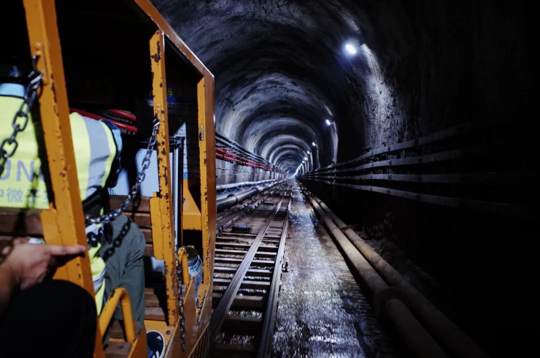 要进入这个国内最大的地下实验洞室,需要乘坐由绞车缆绳拖拽的小火车,沿着1266米的斜井隧道,滑落到地下700米深处。