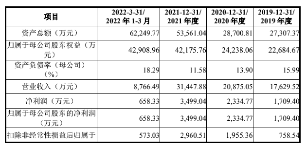 受益于国内半导体行业的发展,艾森股份的营收规模逐渐扩大。2019-2021年及2022年上半年,公司营收分别为17629.52万元、20875.05万元、31447.88万元。各报告期对应实现的归属净利润分别为1709.4万元、2334.77万元、3499.04万元和658.33万元。