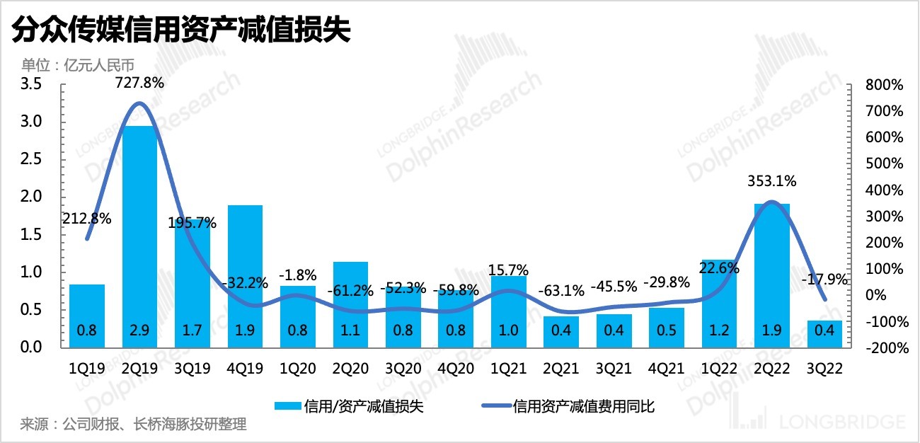 3、整体费率环比优化。销售费用、研发费用在人员削减后继续同比下滑,管理费用同比有所提升,但绝对值不高,因此对整体费用规模影响不大。信用及资产减值损失单季恢复正常,这里的计提大幅走低,不一定是代表着经济显著好转,而有可能是分众在前两个季度已经提前计提有关。