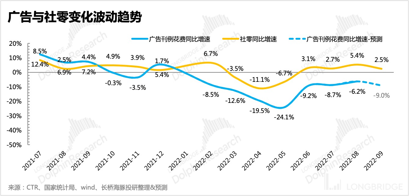 根据 9 月的社零数据,海豚君认为 9 月的广告数据估计也表现不佳,粗略拍拍可能会落到-9% 的水平。