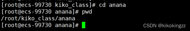 [root@ecs-99730 empty]# pwd //当前所在目录为: /root/kiko_class/empty //root目录下的->kiko_class目录中的->empty目录 [root@ecs-99730 empty]# cd ~ //返回主工作目录->root目录 [root@ecs-99730 ~]# pwd //直接显示为root目录 /root