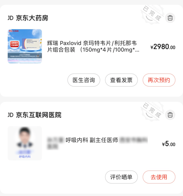 比如,此前京东上的价格为2980元/盒,流程相对简单,要求上传阳性证明,回答系统问题、评估适合用药后,由医生在线开处方即可。