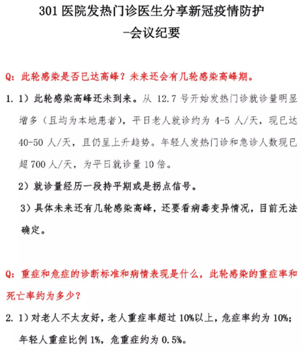 据一周前网传的“北京301医院发热门诊医生会议纪要”显示,老年人重症率超10%以上,危症率约为10%。
