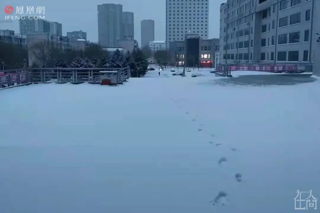 ■ 哈尔滨冬日凌晨,徐蕴拍下自己孤独的脚印。