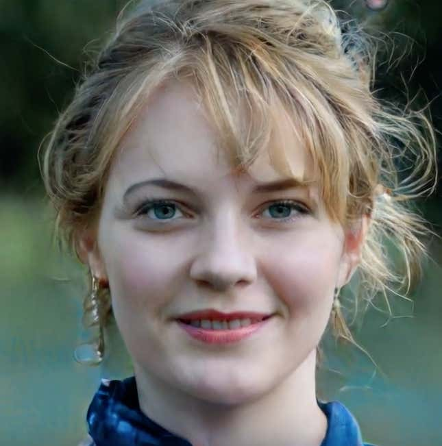 比如一只耳朵上没有戴耳环(除非她是一个叛逆朋克少女),牙齿数量以及方向不对,衣服或背景的形态很不合常理。