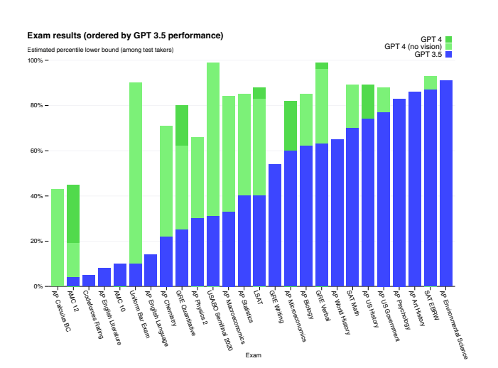 (GPT-4在大多数测试中表现优于GPT-3.5)