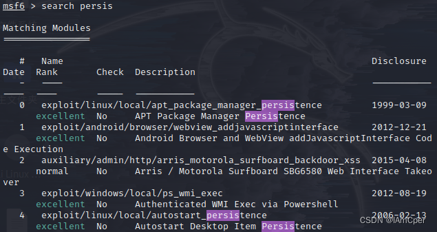 获取权限后留下后门,搜索后门(windows下选择 exploit/windows/local 开头的脚本)
