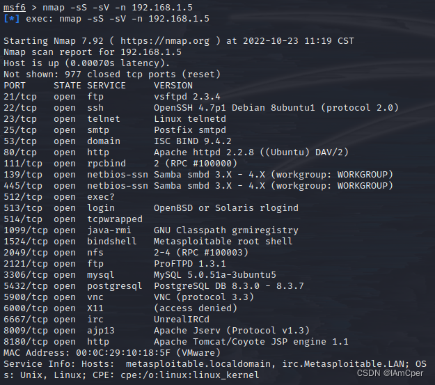 扫描靶场开放端口和对应服务,根据服务类型和版本搜索脚本