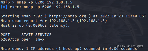 此时使用另外一个终端,nmap查看6200端口状态为open
