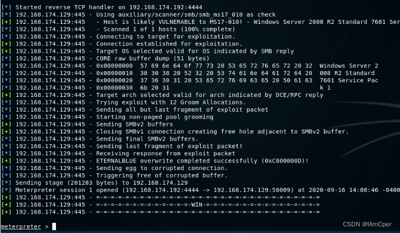 使用攻击模块的漏洞脚本(ms17_010_eternalblue)