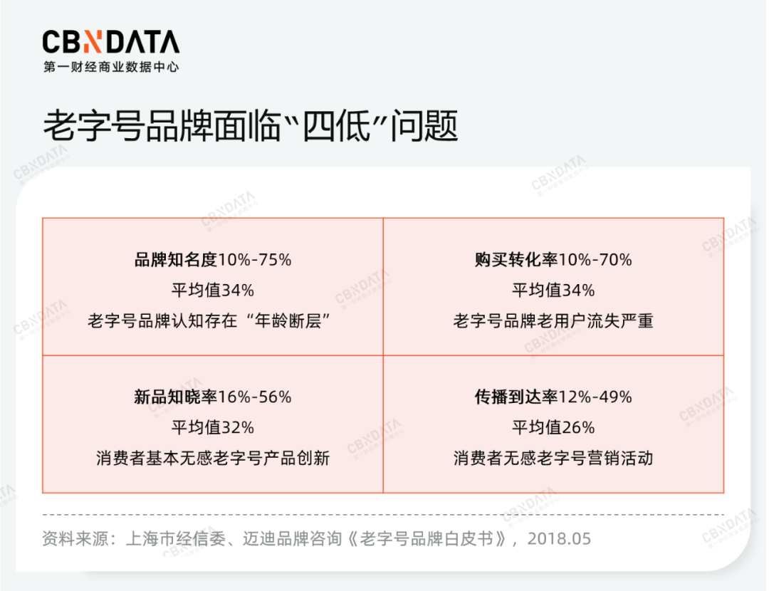 然而,“传统”标签是一柄双刃剑,它虽然承载着品牌的历史声誉和文化价值,但也容易成为老字号传承、破圈过程中的障碍。上海市经信委牵头发布的《老字号品牌白皮书》显示,老字号发展在品牌认知、购买转化、新品知晓、传播到达方面存在“四低”局面。高龄人群仍然是老字号品牌主要的消费主体。