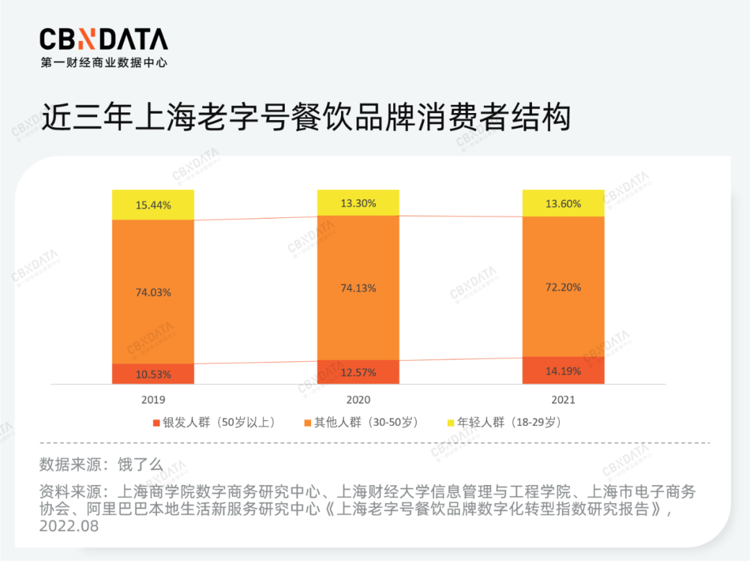但并不乐观的现实在于,老字号在新渠道的营收表现还存在很大增长空间。《上海老字号餐饮品牌数字化转型指数研究报告》显示,截至2021年10月,只有40%的老字号餐饮品牌在线销售实现了正增长。