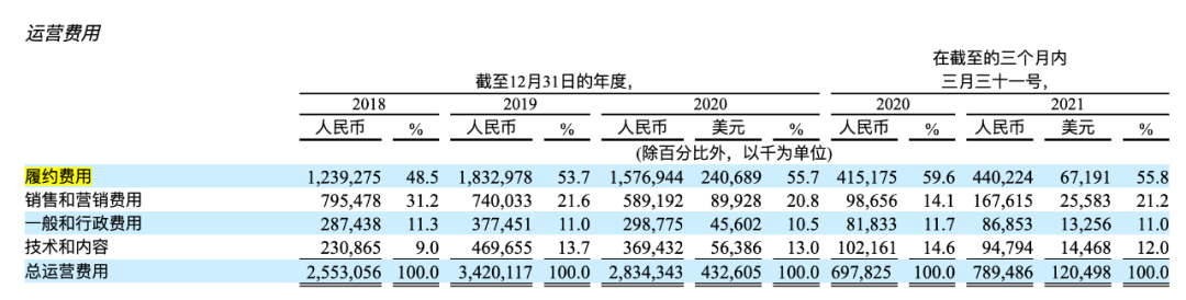 2018-2020年,2021年第一季度每日优鲜履约费用,图/每日优鲜招股书