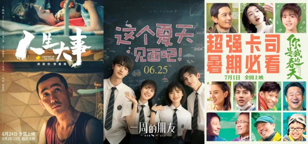 目前《人生大事》《一周的朋友》锁定了6月最后一周,《你是我的春天》则选中了一周之后的七月初。值得一提的是,对口碑较有自信的《人生大事》在重新定档后依然采用了超前点映策略,计划在6月19日和6月23日提前释出。