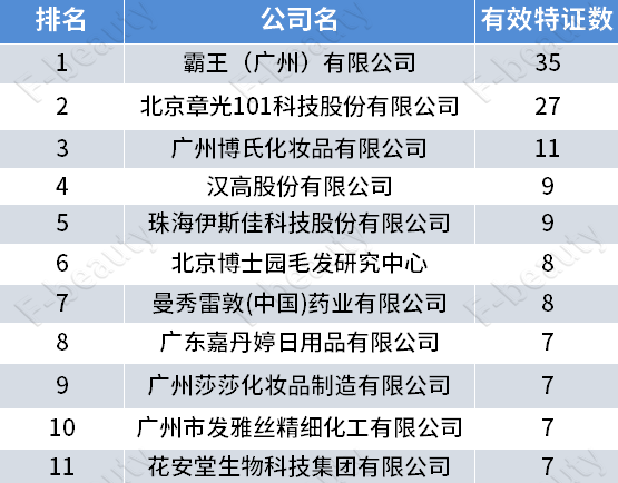 国产防脱发/育发特证持有排行榜 根据国家药监局数据整理
