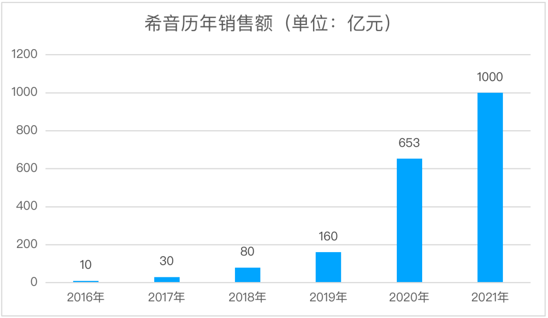 SHEIN从2015年开始快速增长,2016年销售额突破10亿元,2020年销售额飙升至100亿美元(约653亿元),2021年更是大爆发,突破了1000亿元,实现指数级的增长。