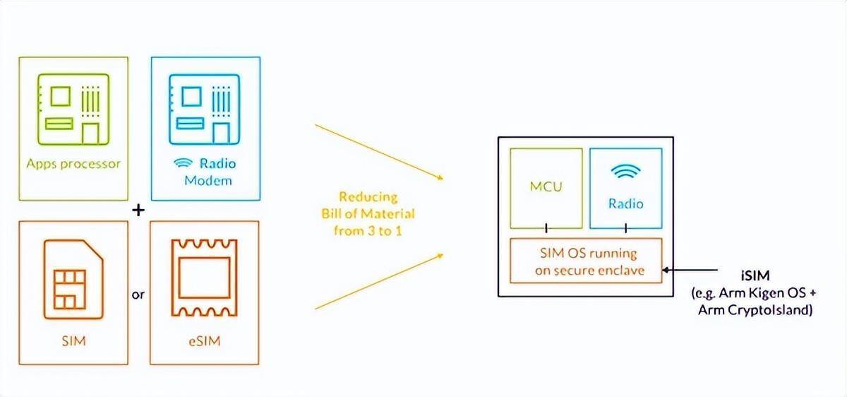 为什么这么说呢?如前所述,eSIM卡的所有操作都可以通过OTA来实现,可以实现运营商切换。那么要做到这一点,是源于硬件集成的操作思路变了,SIM是连接到处理器的专用芯片,但iSIM则是与设备处理器一起嵌入主SoC中,后者具备更高集成性。