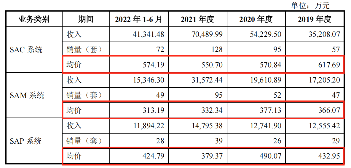 虽然公司的产品技术水平、市场销售及应用处于行业主导地位,但头部竞争对手各具有一定特色和优势。在激烈的行业竞争下,天玛智控也不得不降低售价来夺取市场。报告期内,SAC系统、SAM系统及SAP系统的销量逐渐上升,均价却基本都呈下滑趋势。公司表示,2020年至2021年,SAC系统产品的市场份额已由30.19%上升至32.81%,SAM系统的市场份额由29.52%上升至33.55%。然而近三年SAP系统市场占有率却略有下降,分别为14.36%、12.61%和12.61%。