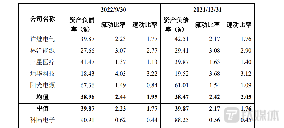 与同行相比,2022年9月末,同行业可比公司资产负债率的平均值为38.96%,流动比率为2.44,速动比率为1.95,而同期科陆电子的资产负债率为90.91%,流动比率为0.62,速动比率为0.44。可见,科陆电子的资产负债率较高,资产流动性较低。这或许也是科陆电子此次通过本次非公开发行股票募集资金来偿还有息负债。