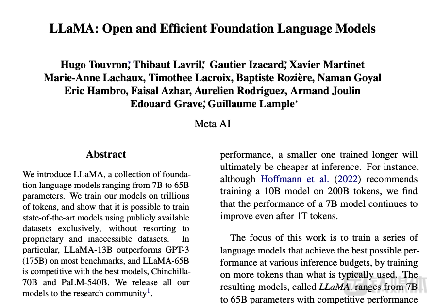 全力押注元宇宙的Meta公司于2月下旬发布了新的开源 AI 语言生成大模型(LLM),名为LLaMA(Large Language Model Meta AI),在帮助研究人员更好推进 AI 相关应用工作。