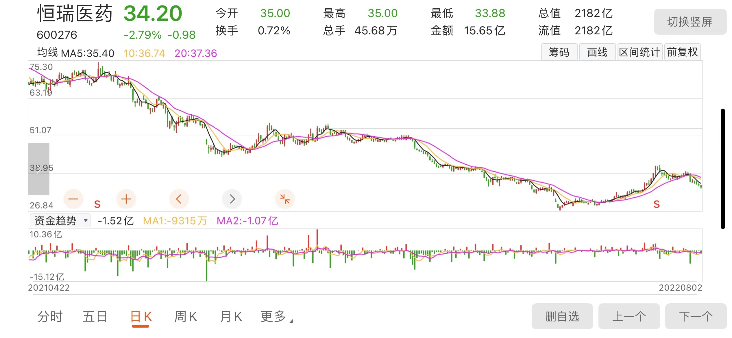 恒瑞医药近期K线走势,图片来自东方财富网
