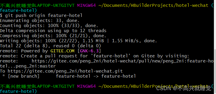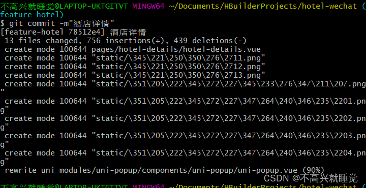 git checkout -b feature-hotel (注意:按照feature-功能名创建)