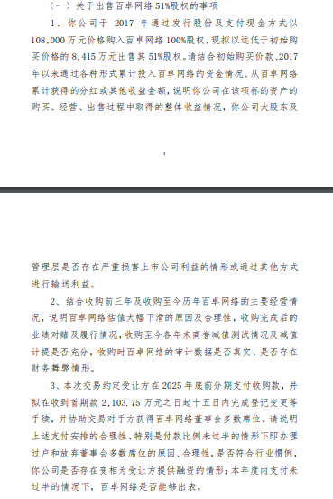 另外,通鼎互联大股东及管理层是否存在严重损害上市公司利益的情形或通过其他方式进行输送利益、收购时百卓网络的审计数据是否真实、是否存在财务舞弊情形等问题被拷问。在通鼎互联回复之后,很快遭到深交所的第二轮追问。