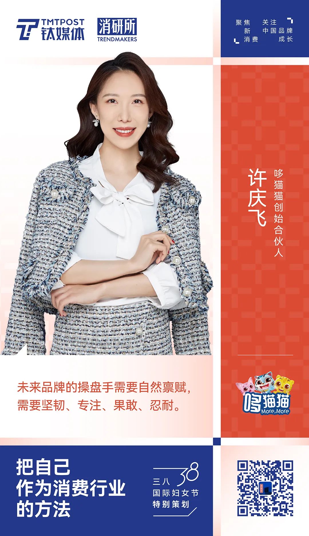 许庆飞Febe毕业于清华大学,并取得美国沃顿商学院MBA学位,拥有八年投行、私募、FOF经验,曾任某平台跨境电商业务联合创始人。职业经理人生涯结束后,五年喜获三胎宝宝,并开启创业生涯,创办新一代儿童食品饮料品牌哆猫猫。