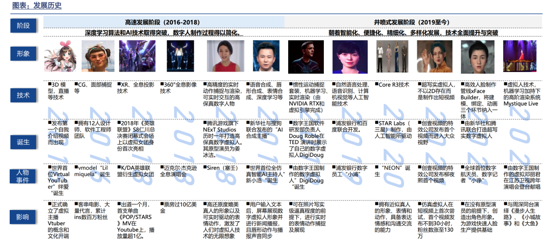 语音识别、自然语音处理、语音合成、语音驱动面部动画等技术、以及深度学习算法上的突破,为虚拟人的发展提供了技术支撑。