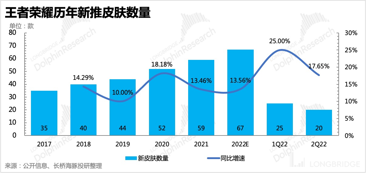 在当下的经济环境(大部分人对可选消费的需求降低),游戏实际上也在走变相提高氪金的路线。以全民游戏《王者荣耀》为例,近两年来,《王者荣耀》推出新皮肤的数量和频率明显走高,平均单用户付费 ARPU(收入/MAU)也在不断提升。