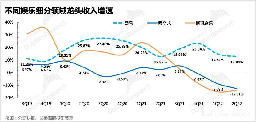 比如在泛娱乐公司中,身处产品周期的网易妥妥属于第一类,而爱奇艺、腾讯音乐则是最失败的第三类。