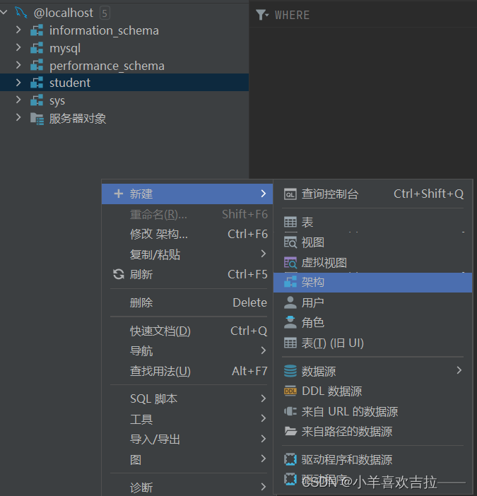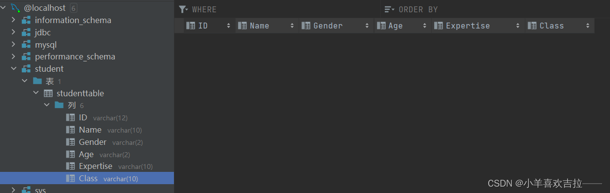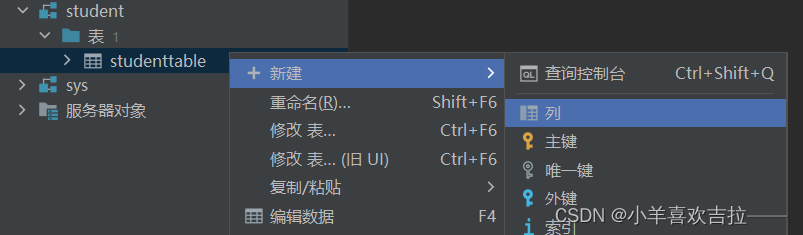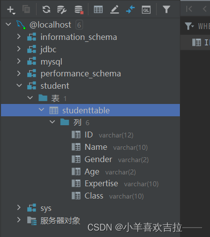 //这里的student是我们在DataGrip创建的一个框架,studenttable是一个表的名称